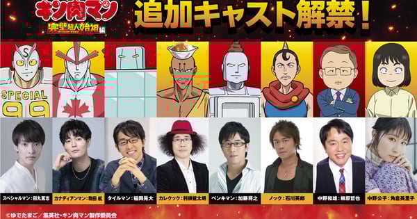 A equipe para o próximo Kinnikuman: galinha de origem perfeita (Kinnikuman: Arco de Origem Perfeitoou literalmente, Kinnikuman O anime Perfect Chо̄jin/Superhuman Origin Arc) revelou mais membros do elenco, os artistas das músicas temas e o terceiro vídeo promocional do anime no domingo. O novo vídeo mostra a música tema de abertura “LOVE & JUSTICE” de Yasuharu Takanashi×FLUXO. A música tema do Episódio 0 da série é uma nova versão do original «Kinnikuman Go Fight!» música interpretada por Kinnikuman, dublada por Mamoru Miyano. As letras das duas músicas-tema foram escritas por Yukinojo Mori (Dragon Ball Z Series, Homem de um soco só temporada 2, Nota Astronômica letras da música tema). Kinnikuman, dublado por Mamoru Miyanotambém canta a música tema de encerramento “Chōjin”.